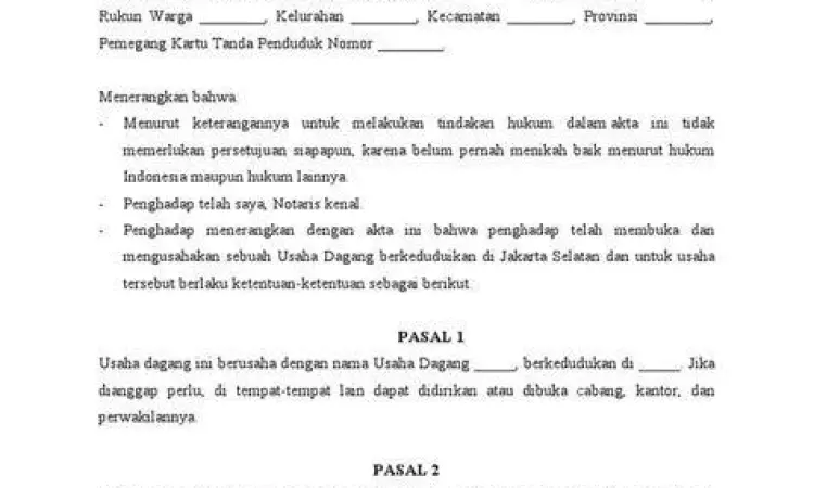 Contoh Draft Isi Akta Pendirian Usaha Dagang