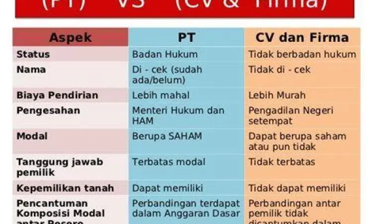 Sebelum memilih untuk menggunakan contoh badan usaha CV sebagai model bisnis Anda, sangat penting untuk melihat perbandingannya dengan Perseroan Terbatas (PT) agar tidak salah langkah dalam perencanaan jangka panjang.