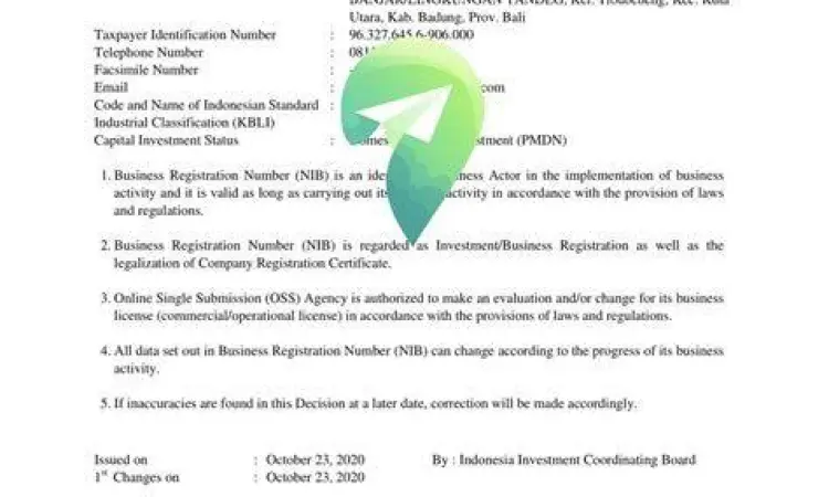 - Nomor Induk Berusaha (NIB): Identitas tunggal bagi pelaku usaha yang diterbitkan melalui sistem OSS (Online Single Submission). NIB saat ini merangkap fungsi sebagai TDP (Tanda Daftar Perusahaan) dan API (Angka Mengenal Importir).