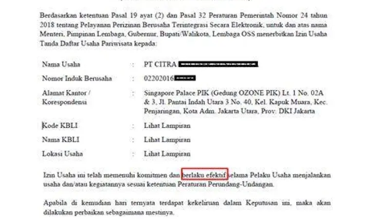 Seiring dengan diberlakukannya Undang-Undang Cipta Kerja, sistem perizinan di Indonesia telah bertransformasi menjadi Perizinan Berusaha Berbasis Risiko melalui sistem Online Single Submission (OSS). Hal ini mempermudah para pelaku usaha, baik skala mikro, kecil, menengah, maupun besar, untuk mendapatkan dokumen legalitas yang sesuai dengan tingkat risiko kegiatan usahanya tanpa harus melalui birokrasi yang berbelit-belit.