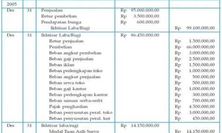 - Kredit: Kolom untuk mencatat pengurangan aset atau penambahan kewajiban, modal, dan pendapatan.