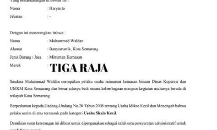 Adalah benar warga kami yang memiliki usaha di bidang [Sebutkan Jenis Usaha] dengan nama toko/usaha [Nama Usaha]. Usaha tersebut berlokasi di wilayah RT 001 dan telah beroperasi sejak [Tahun Berdiri].