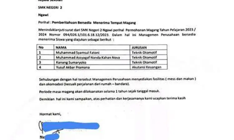 Contoh Surat Magang dari Perusahaan untuk Referensi Profesional