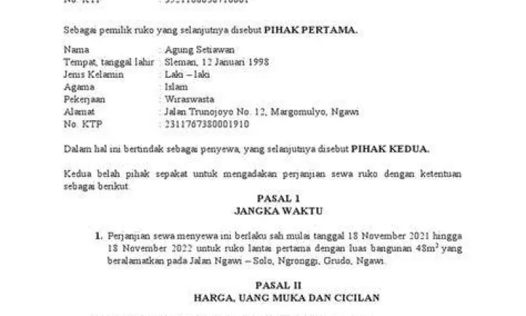 Contoh Surat Perjanjian Sewa Tempat Usaha PDF Lengkap dan Sah