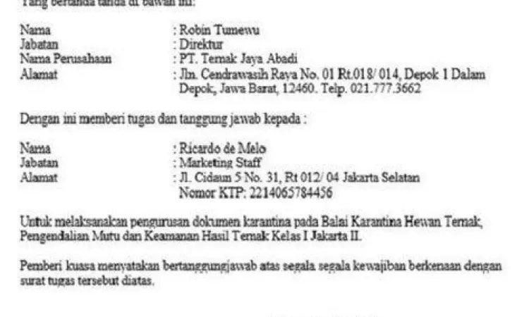 Contoh Surat Tugas Perusahaan Resmi Terlengkap